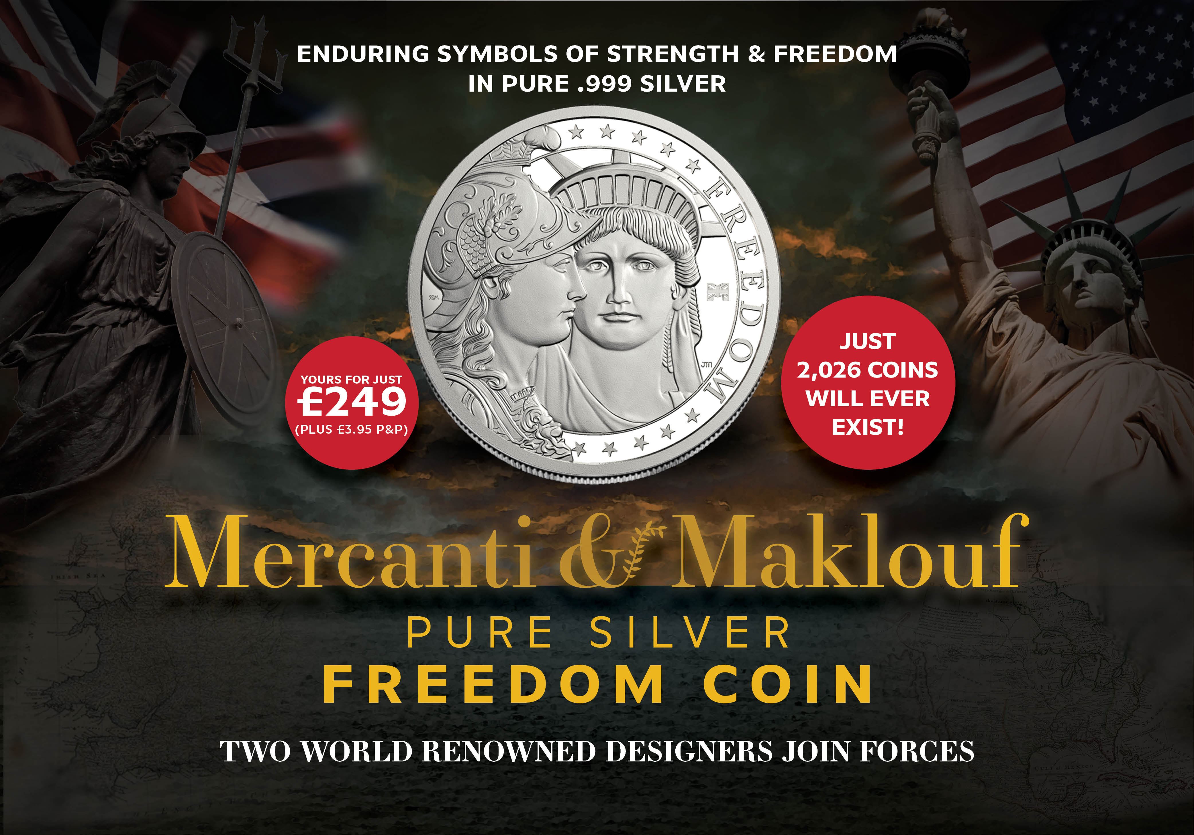 Order Your 2026 Mercanti & Maklouf Freedom Pure Silver Coin today, yours for just £249! (PLUS £3.95 P&P)